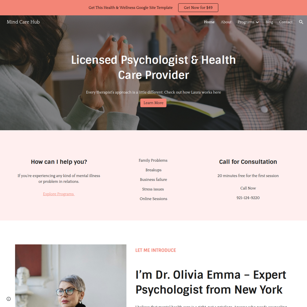 đź§ Olivia : Therapist and Counseling Website Template for Google Sites