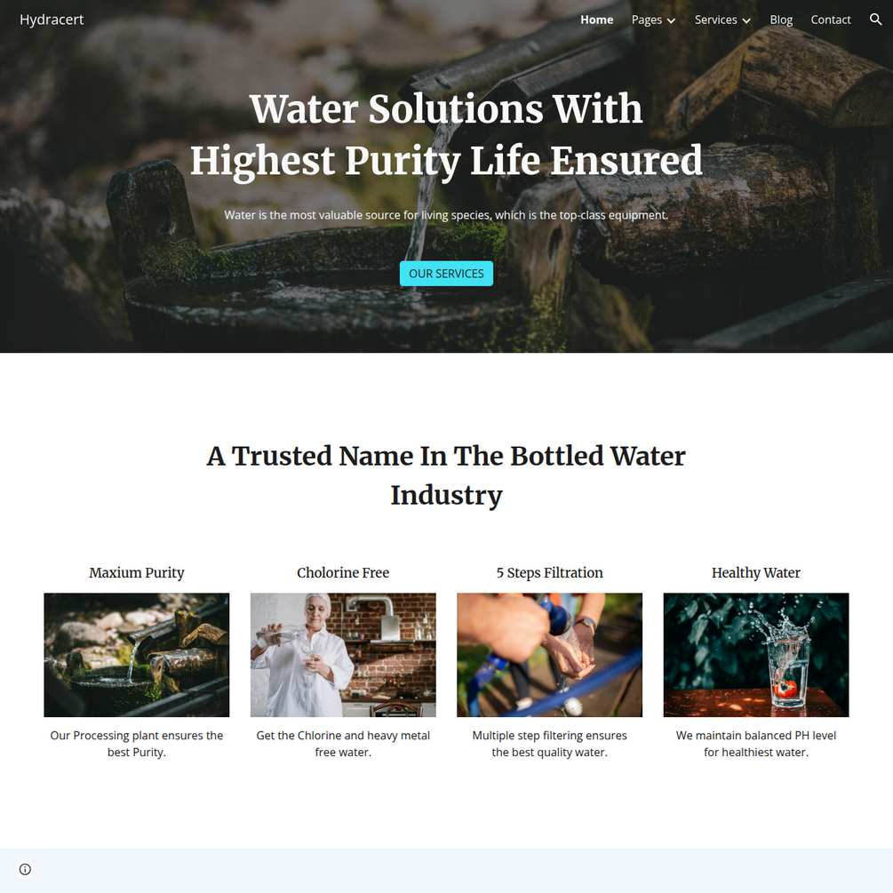 💧 Hydracert – Water Purification Company Website Theme Template for Google Sites